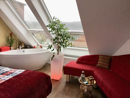 Freistehende Badewanne im orientalischem Zimmer