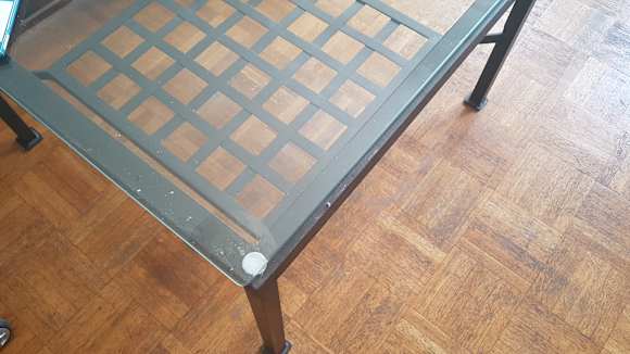 Unsauberer Tisch im Hotelzimmer