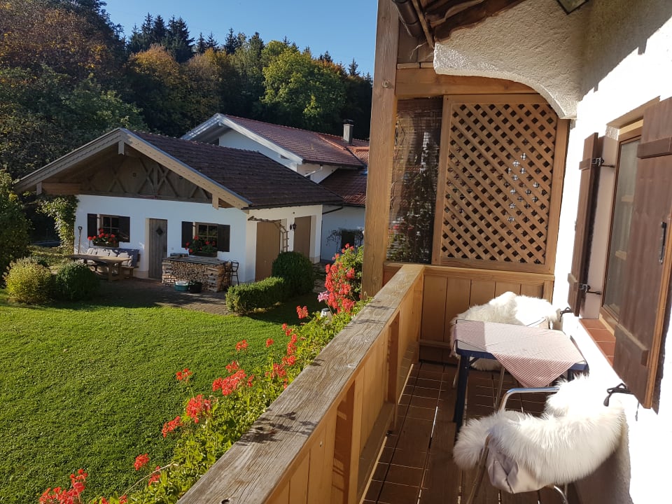 Ein herrlicher Platz .......der kleine Balkon. Schön gemütlich mit Fellen auf den Stühlen. Da kann man es aushalten......wir hatten morgens die Sonne auf dem Balkon.