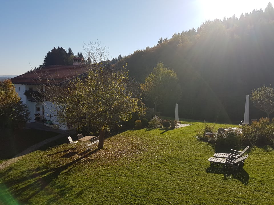 GartenanlageGenügend Plätze zum Entspannen......wir waren im Herbst bei herrlichem Wetter da. Etwas unterhalb ist noch ein grosser Teich.