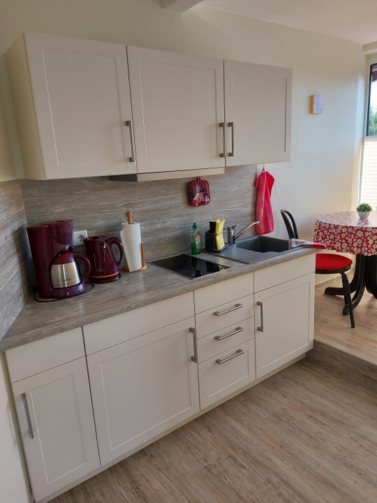 Die ausreichend ausgestattete Küchenzeile eröffnet zahlreiche Möglichkeiten