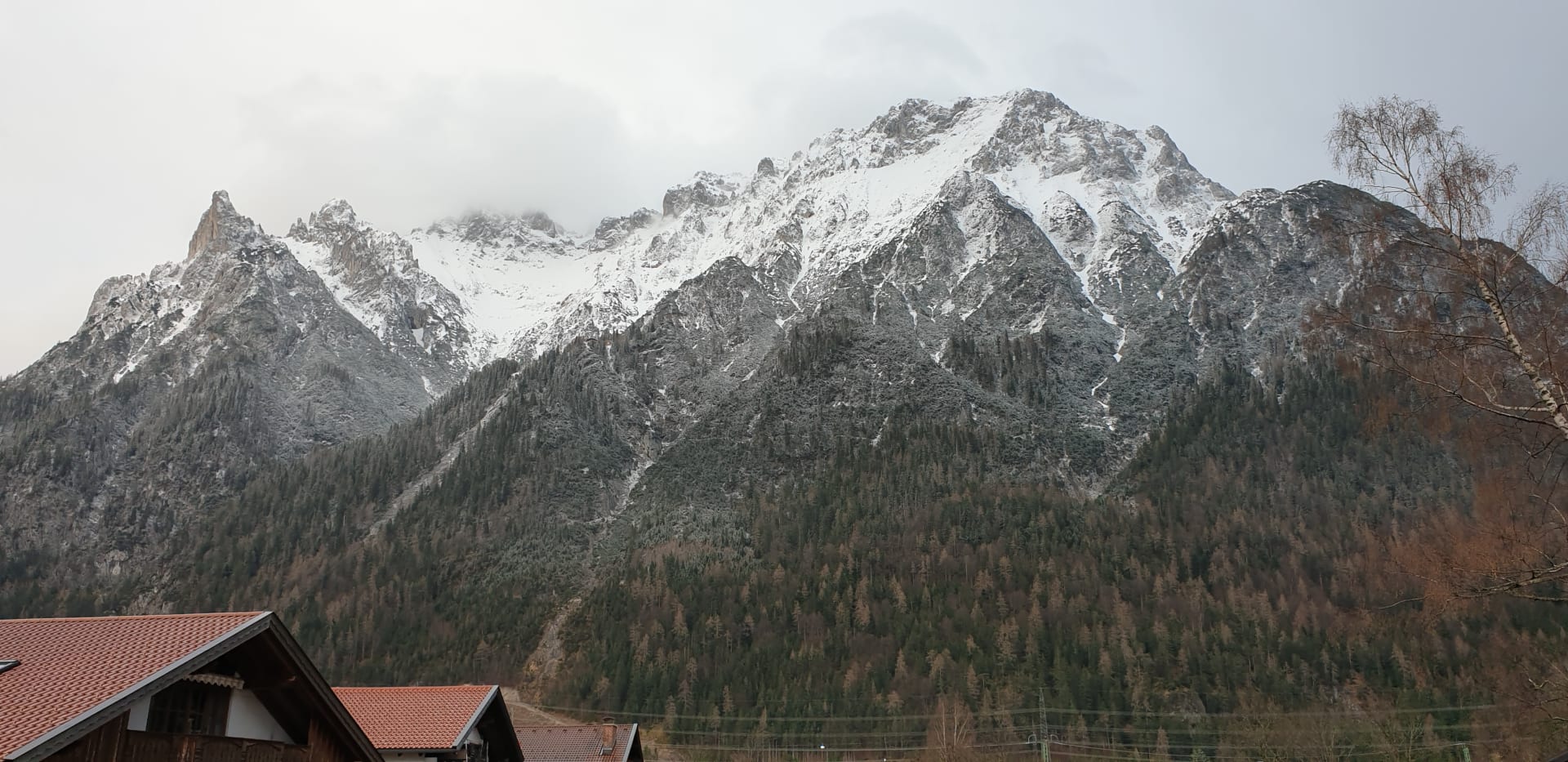 Direkter Blick aus vom Balkon auf den Karwendel