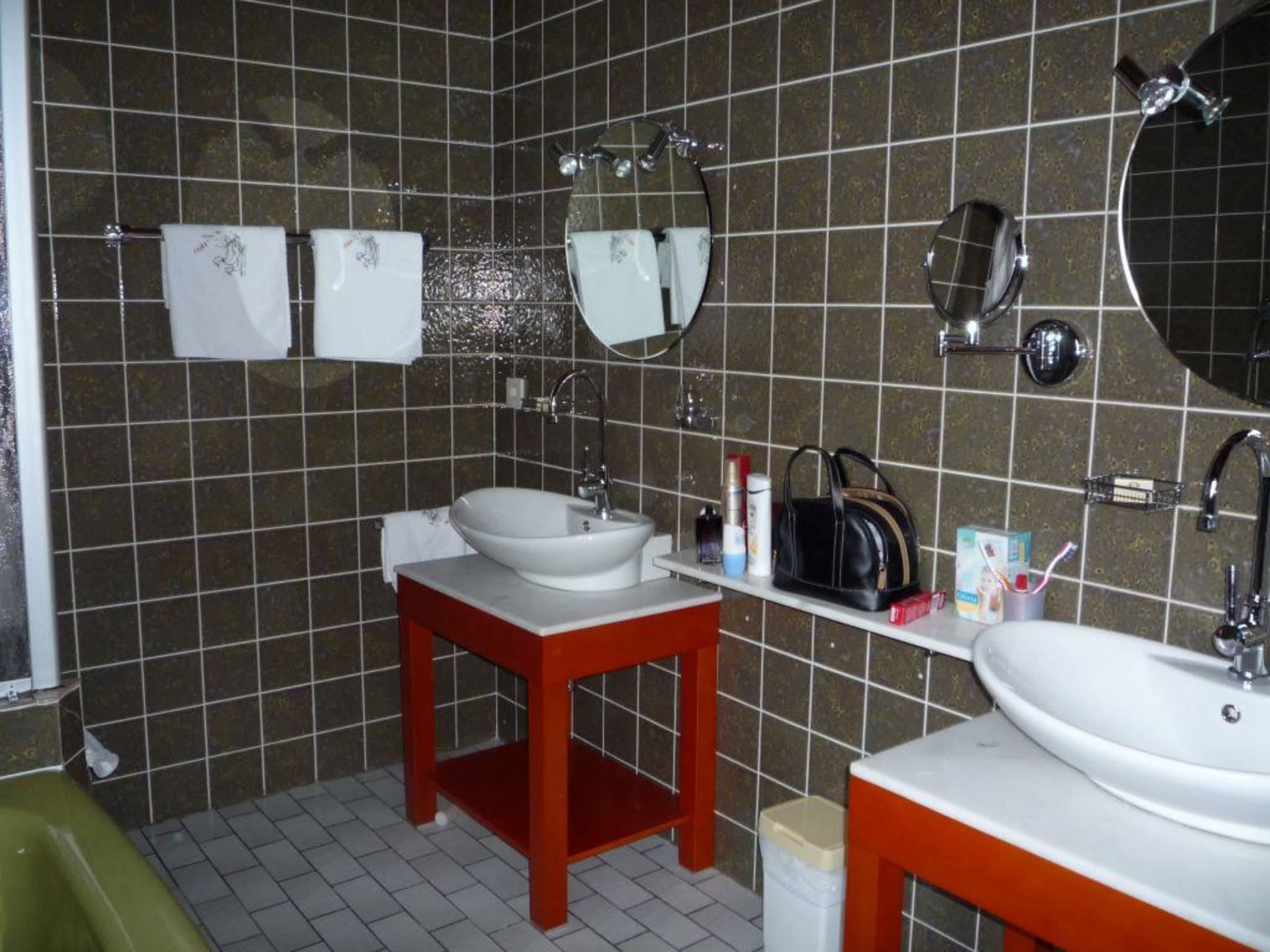 gegenüber noch eine Wanne und eine Dusche