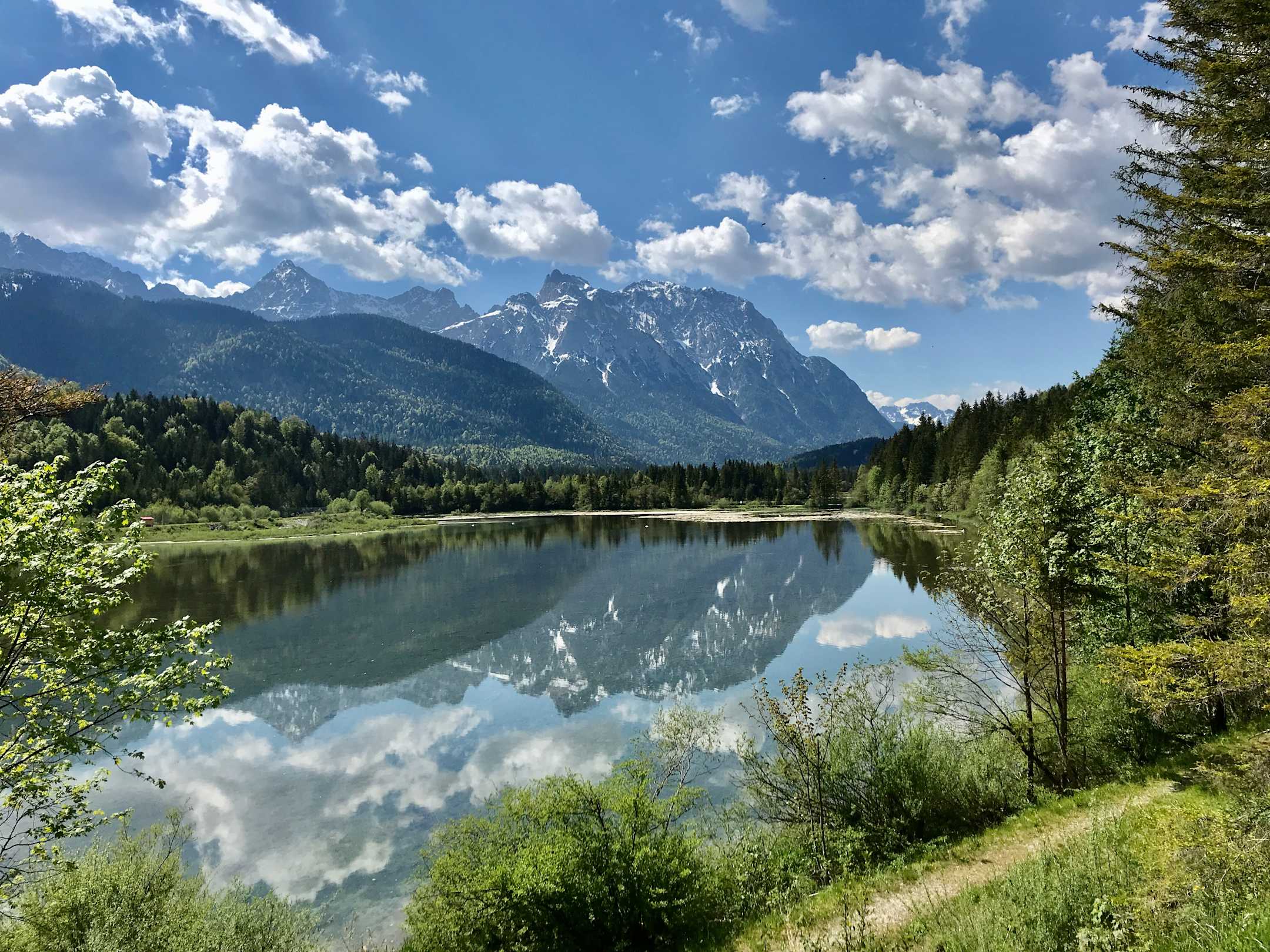 am Isarstausee bei Krün mit Blick auf das Karwendelgebirge