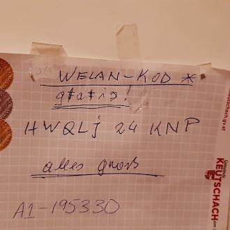 Das war die Info am Erste-Hilfe-Kasten im ersten Stock über den WLAN-Zugang.