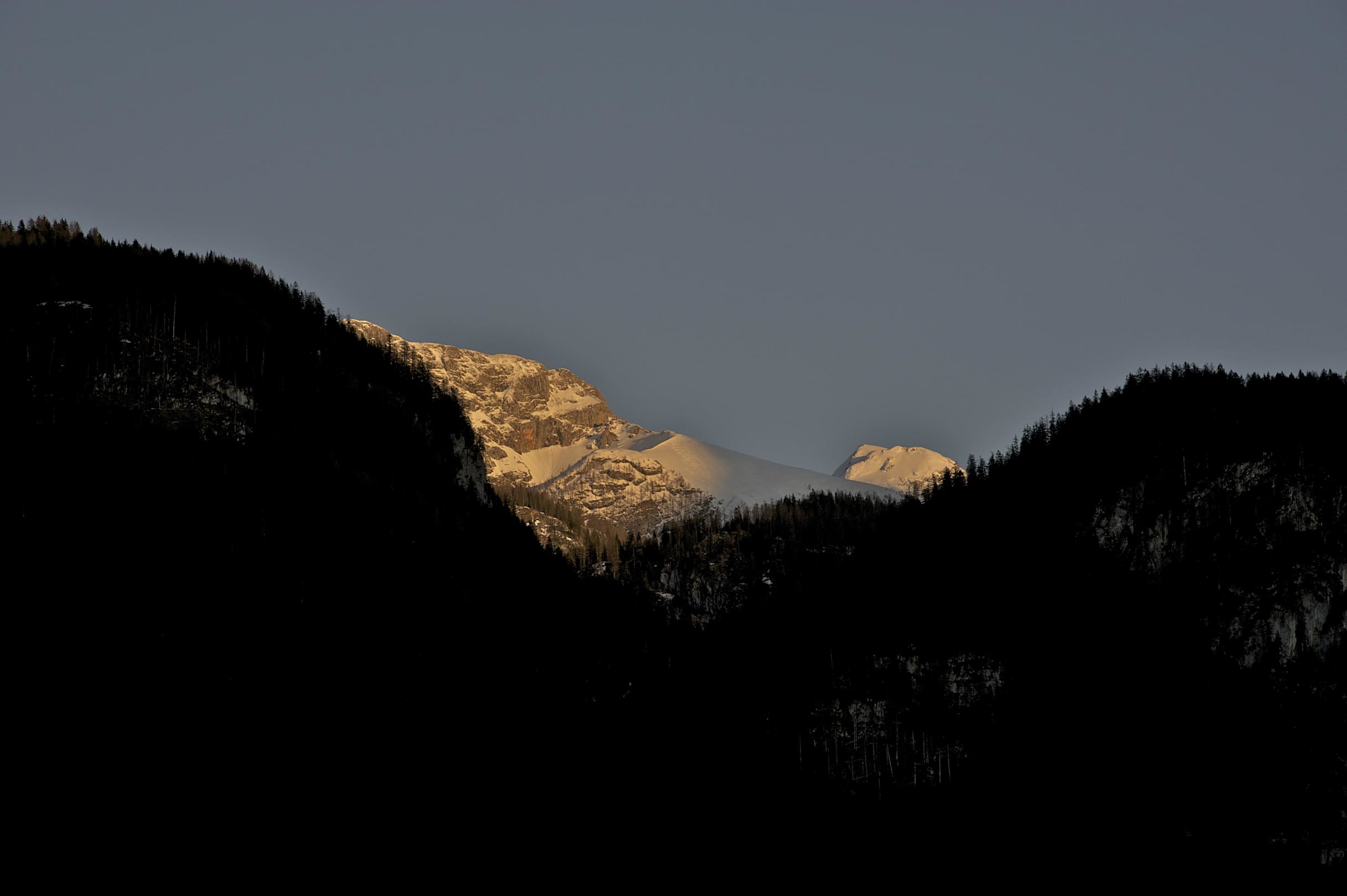AlpenglühenAussicht vom Balkon. Abendstimmung in den Bergen.