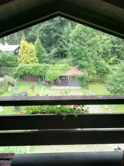 Blick in den Garten vom Balkon