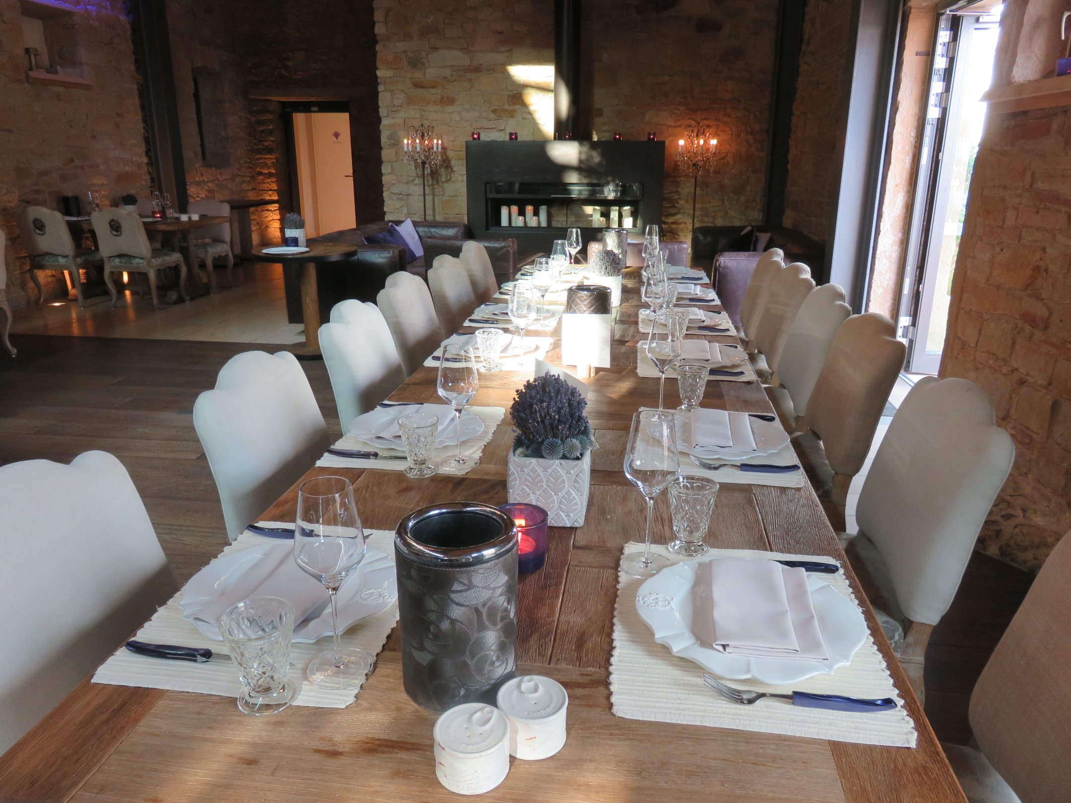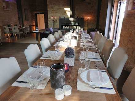 eine Tafel im geräumigen Restaurant