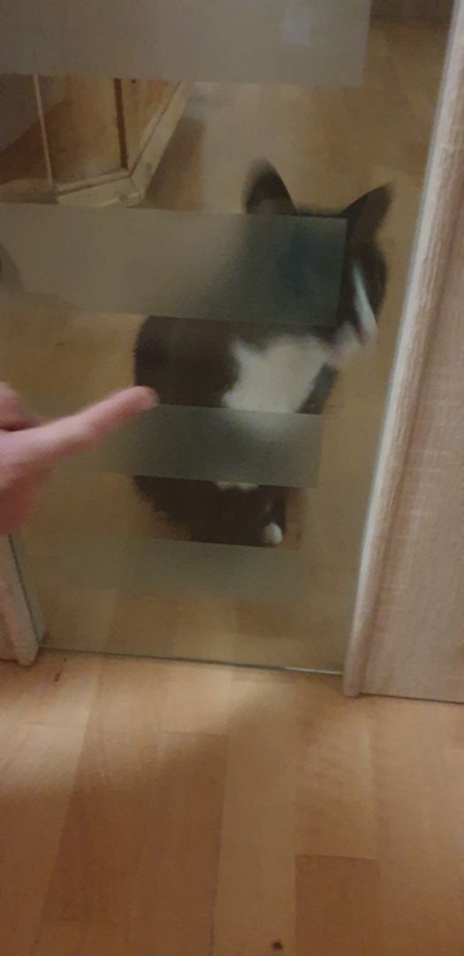 Mieze vor der Wohnungstür