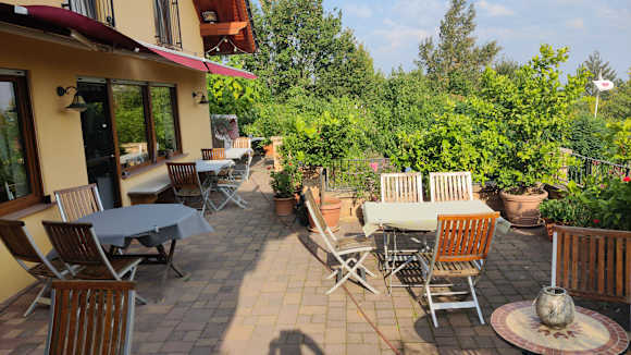 Die Pensionsterrasse.