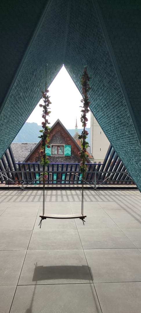 Dachterrasse mit mehreren Lounges uns Schaukel
