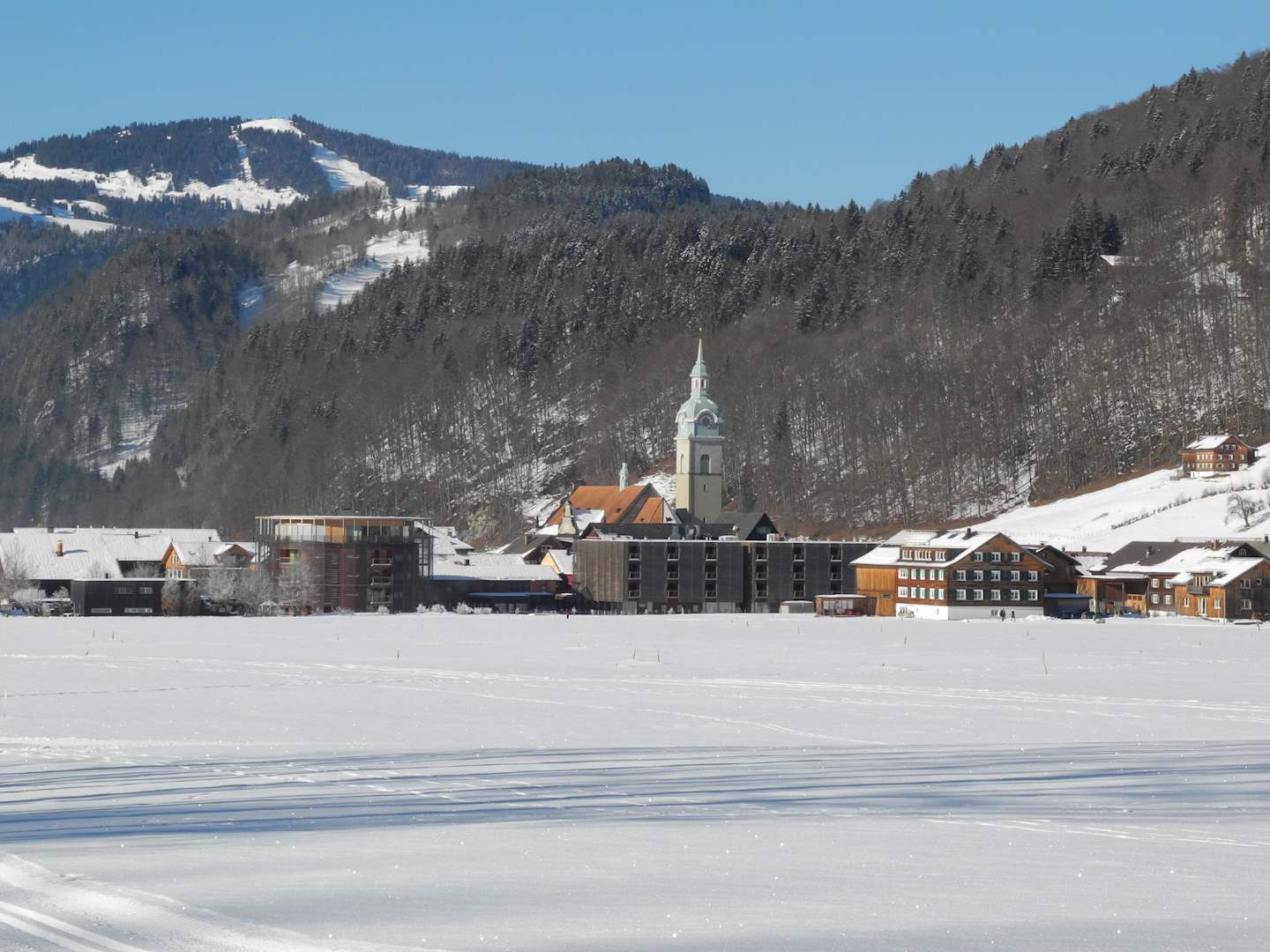 Hotelanlage und Dorf Bezau