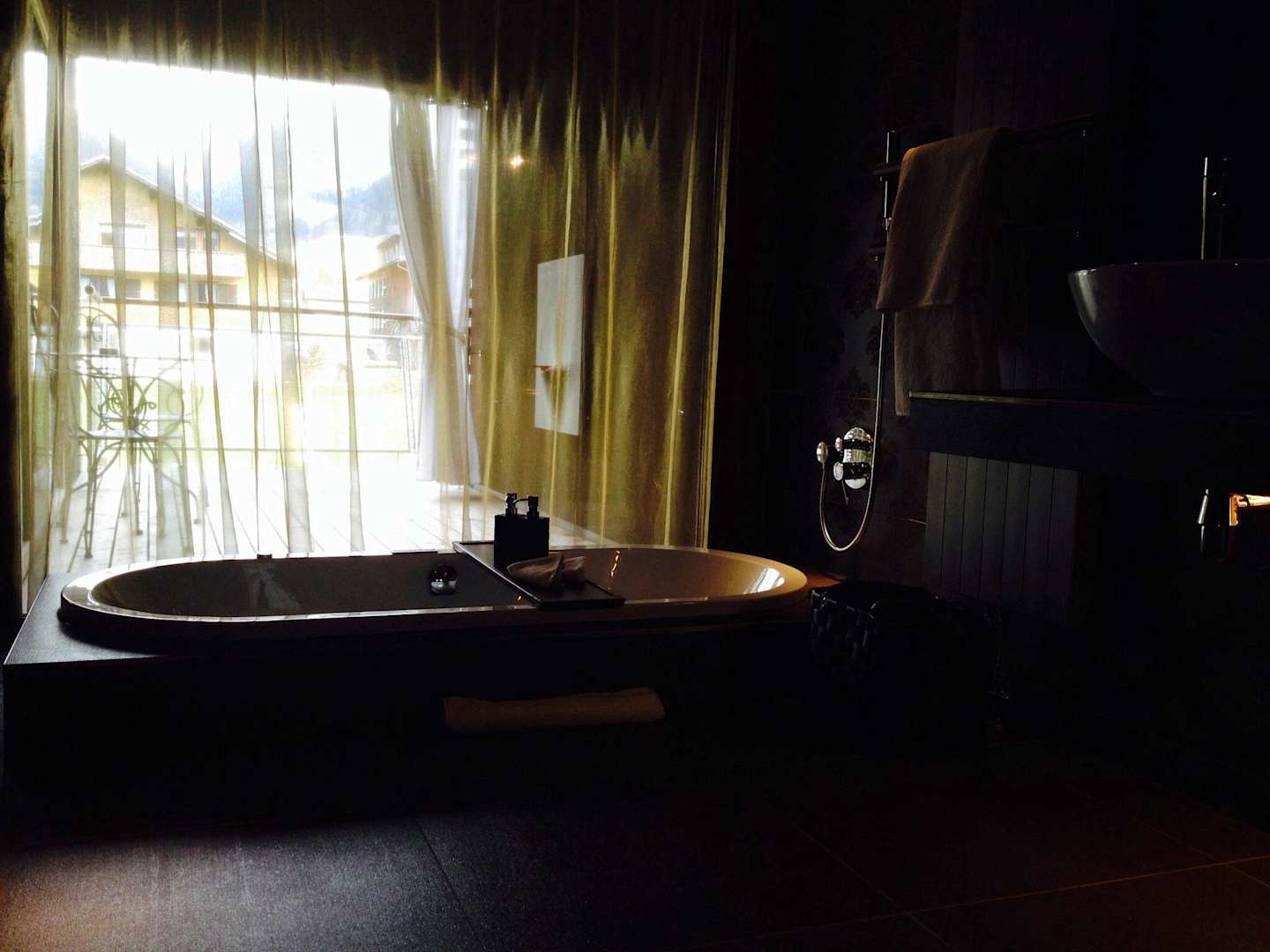 Blick vom Bad über Whirlpool auf Balkon