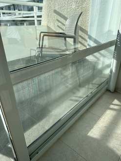 Man sieht es auf dem Bild kaum, aber auf der unteren Scheibe sind deutliche Schmierstreifen zu erkennen, welche die Sicht nach draussen immer neblig wirken lassen. Widerlich!