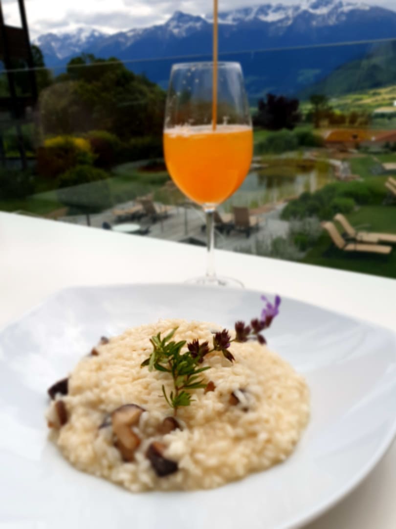 Pilzrisotto zum Mittagessen mit Aussicht