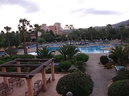 Blick vom Balkon auf den Pool