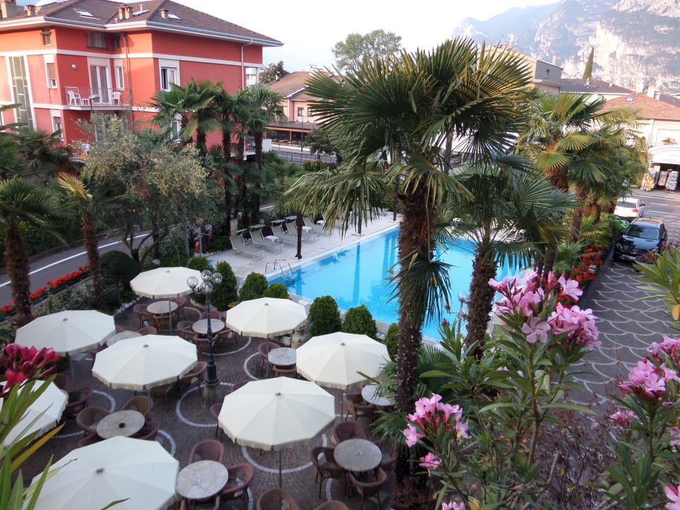 Blick von der Terrasse auf den Pool