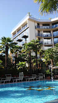 Blick vom Pool auf's Hotel
