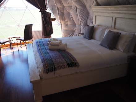 Blick in den Dome - mit gemütlichem Bett und Sitzecke