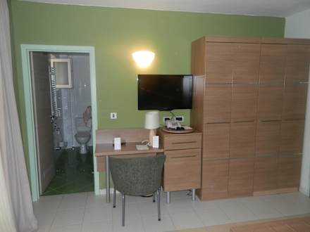 Blick zum TV und zum Bad