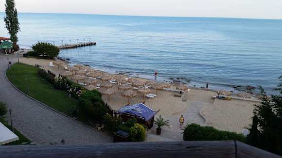 StrandDas sind etwa 40 % vom Strand, der sich weiter nach rechts erstreckt. Links und rechts ist ein Weiterlaufen nicht möglich!