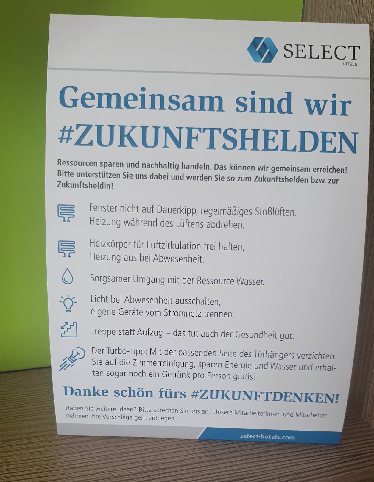ZimmerDas Comedy Schild im Zimmer: nicht putzen für die Umwelt. Bischen putzen bevor der Gast kommt, wäre schon schön gewesen