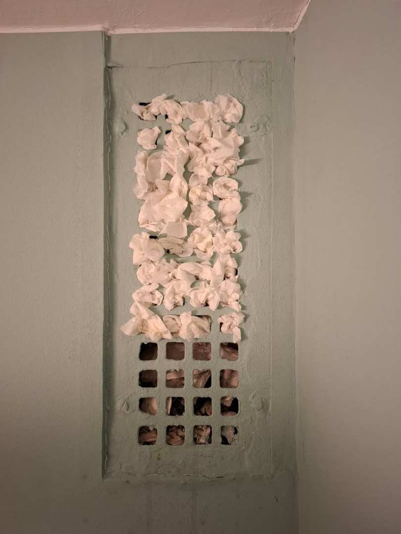 ZimmerIm Bad war die Lüftung mit WC-Papier zugestopft.