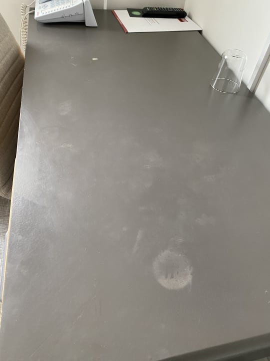 ZimmerTisch mit Flecken beim Ersten Betreten, Müll ebenso nicht entleert