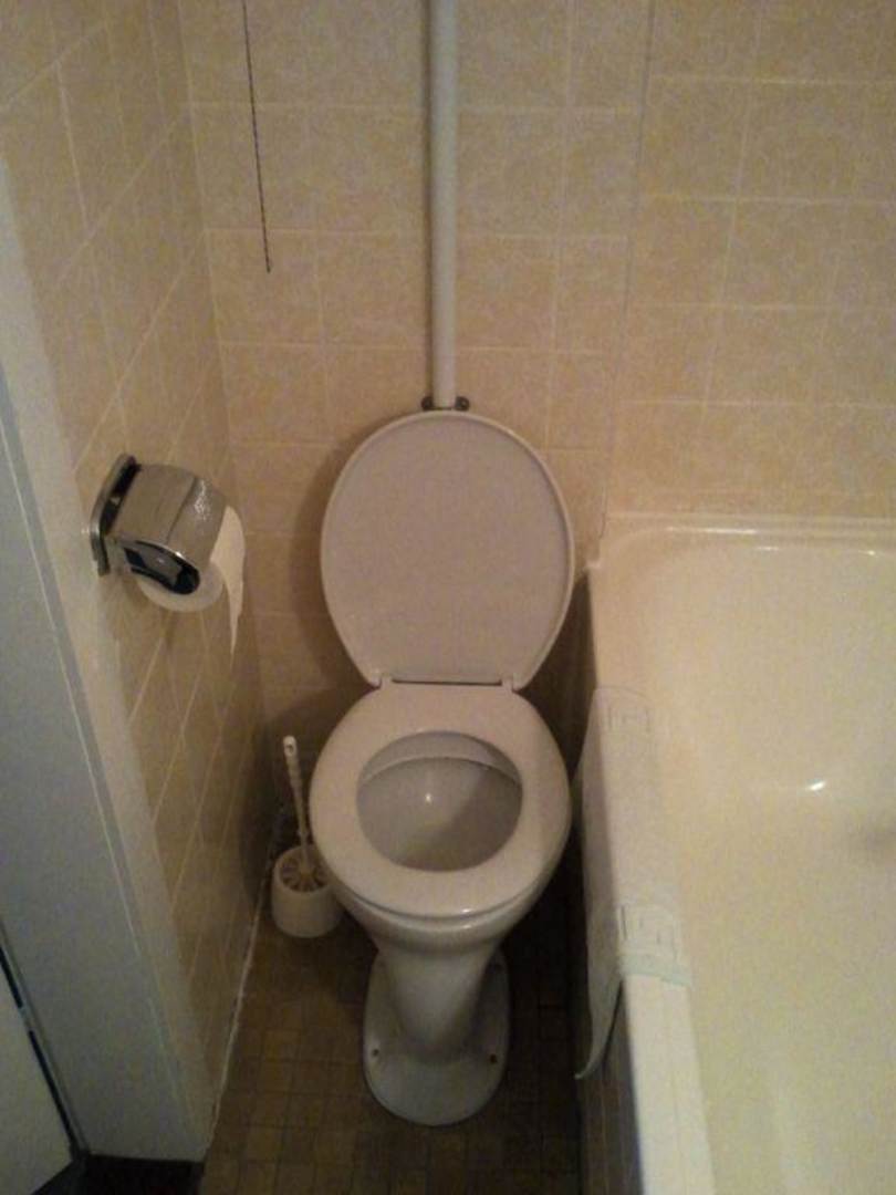 BadezimmerDies ist das WC mit hochhängenden Spülkasten und Platz für sehr schlanke.