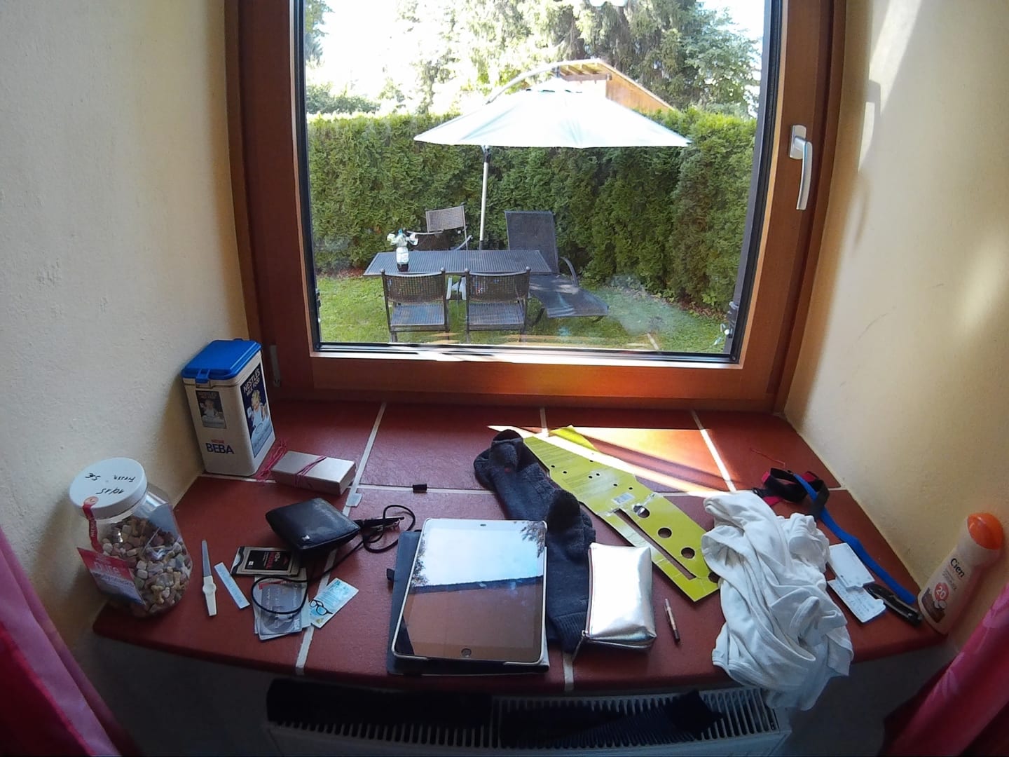 Blick in den Garten. Wespenplage-dafür aknn keiner was..........