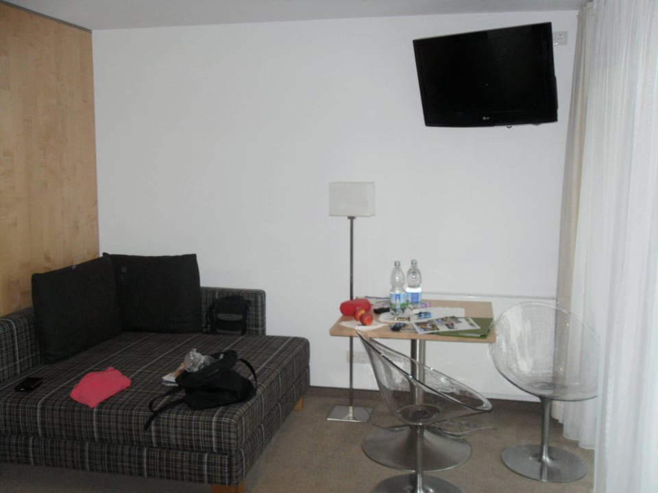 die Sitzecke modern ausgestattet mit gemütlichen Glasstühlen.