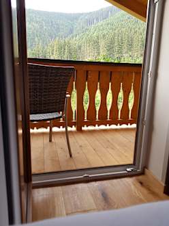 Blick vom Bett in den Balkon