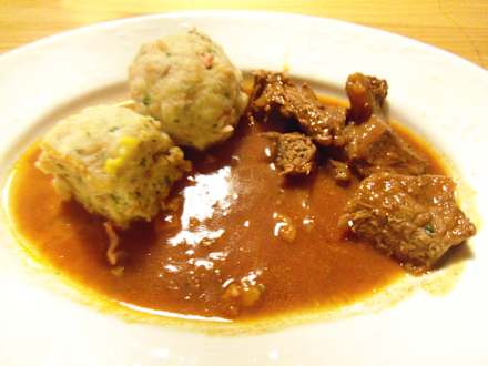 Hauptspeise Gulasch mit hausgemachten Knödeln