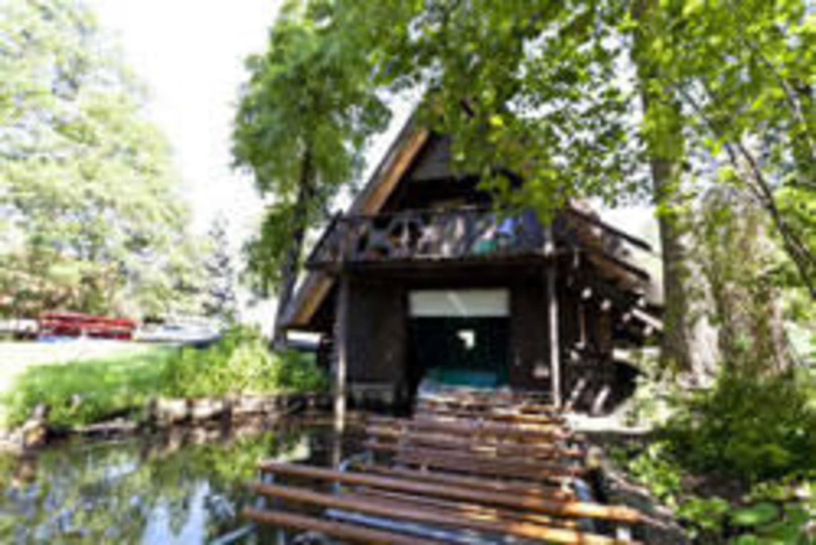 Unser Bootshaus vom Wasser aus