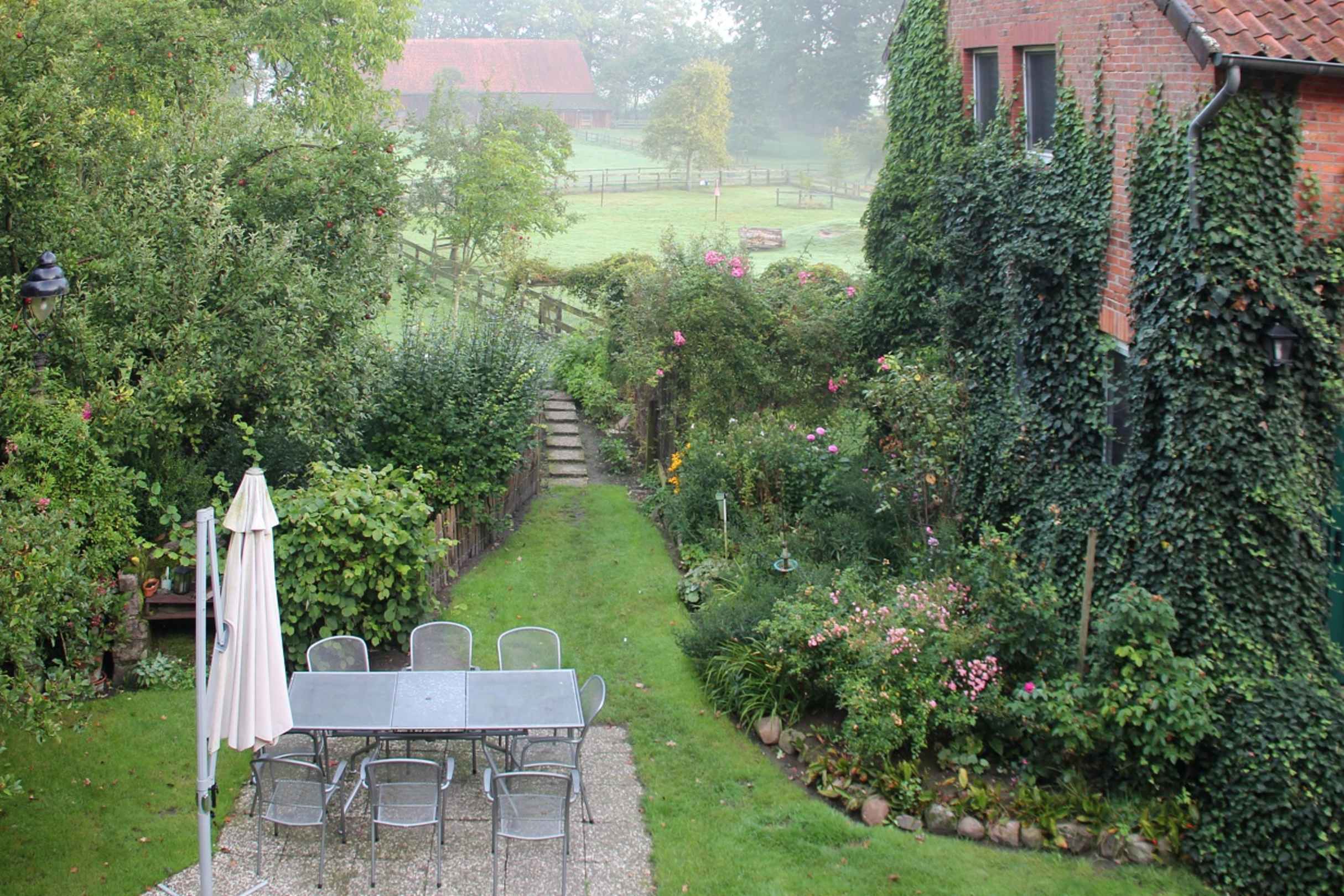 Blick vom Zimmer im OG auf den Garten