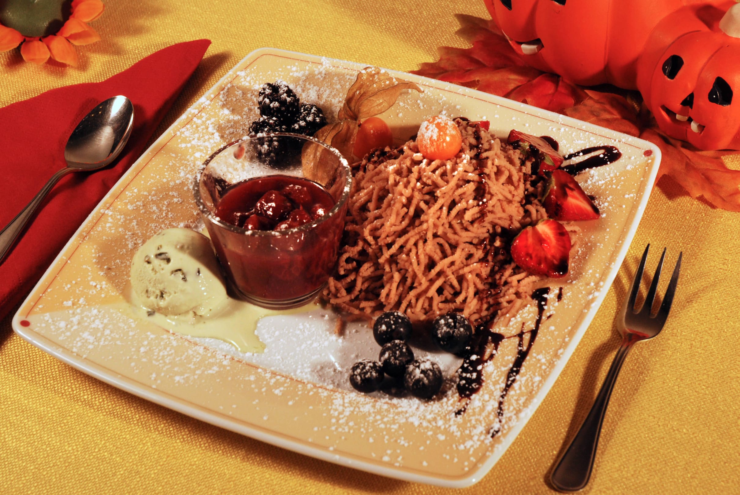Kastanienreis mit Schlag und warme Rumweichseln...