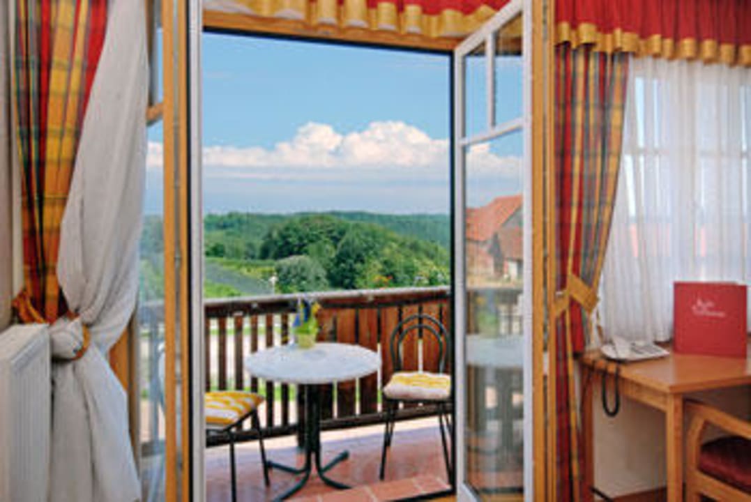 Zimmer, Balkon und Ausblick auf die Oststeiermark