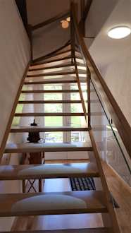 Steile Treppe zu den Zimmern unter dem Dach