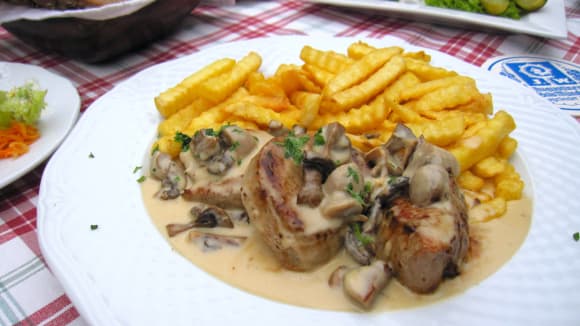 Schweinelendchen in Rahmsoße mit Pilzen