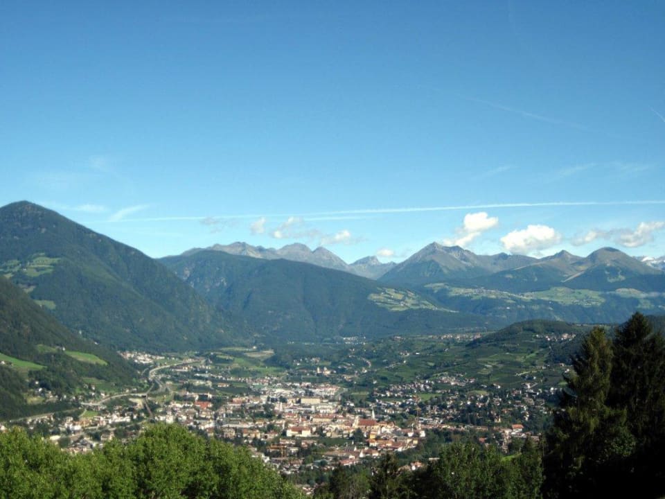 Brixen und BergpanoramaBrixen und das Eisacktal von der Plose ausgesehen. Links oben am Berghang liegt das Bergdorf Spiluck mit dem Hanser-Hof.