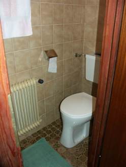 Toilette mit Dusche. Die Dusche befand sich gegenüber von der Toilette.