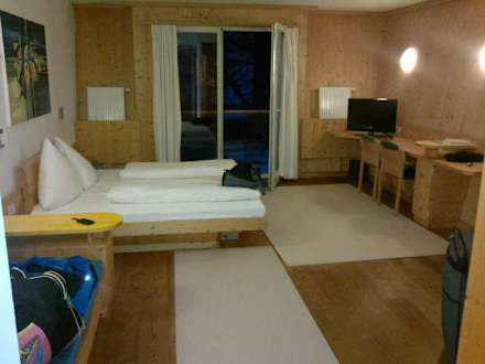 Das Doppelzimmer ist schön und geräumig. Auf der rechten Seite (nicht im Bild) ist eine weitere Glastür zu finden, was das Zimmer schön hell macht. WC und Bad sind außerdem getrennt - auch sehr praktisch!