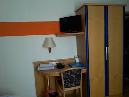 TV mit Kabelkanäle. Telefon. An der Rezeption bekommt man ein Plan für die Stadt mit weg beschreibung. Das Hotel ist ca. 10 min. vom SEE entfernt