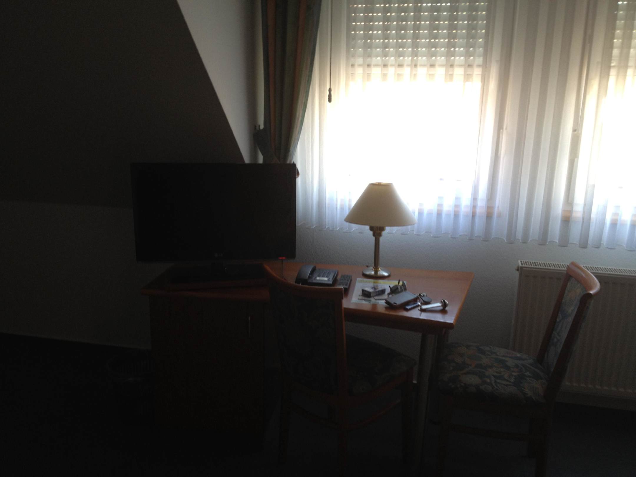 Fernseher mit Tisch und Stuhl