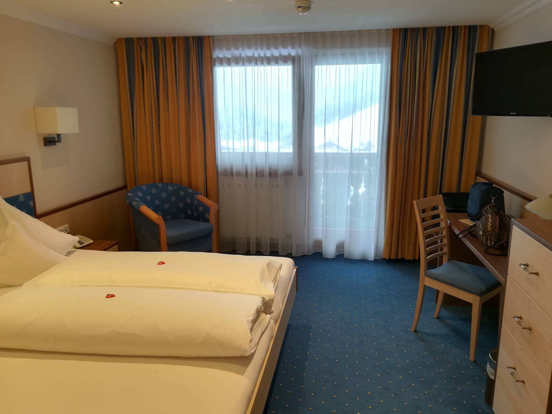 Das Zimmer war sehr geräumig und das Bett bzw die Matratzen waren super! Ich habe große Rückenprobleme und habe sehr gut drin schlafen können! Auch der Ausblick auf die Berge war toll!