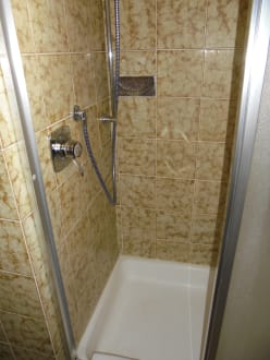 Auch die Dusche wirkt wie aus einem Sanitär-Museum. Allerdings sucht man hier Schimmel vergebens.