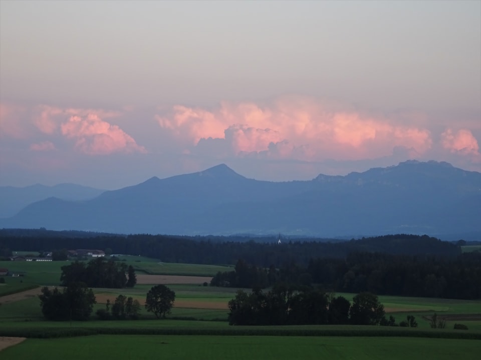 Blick von meinem Balkon auf die Wolken über den Chiemgauer Alpen