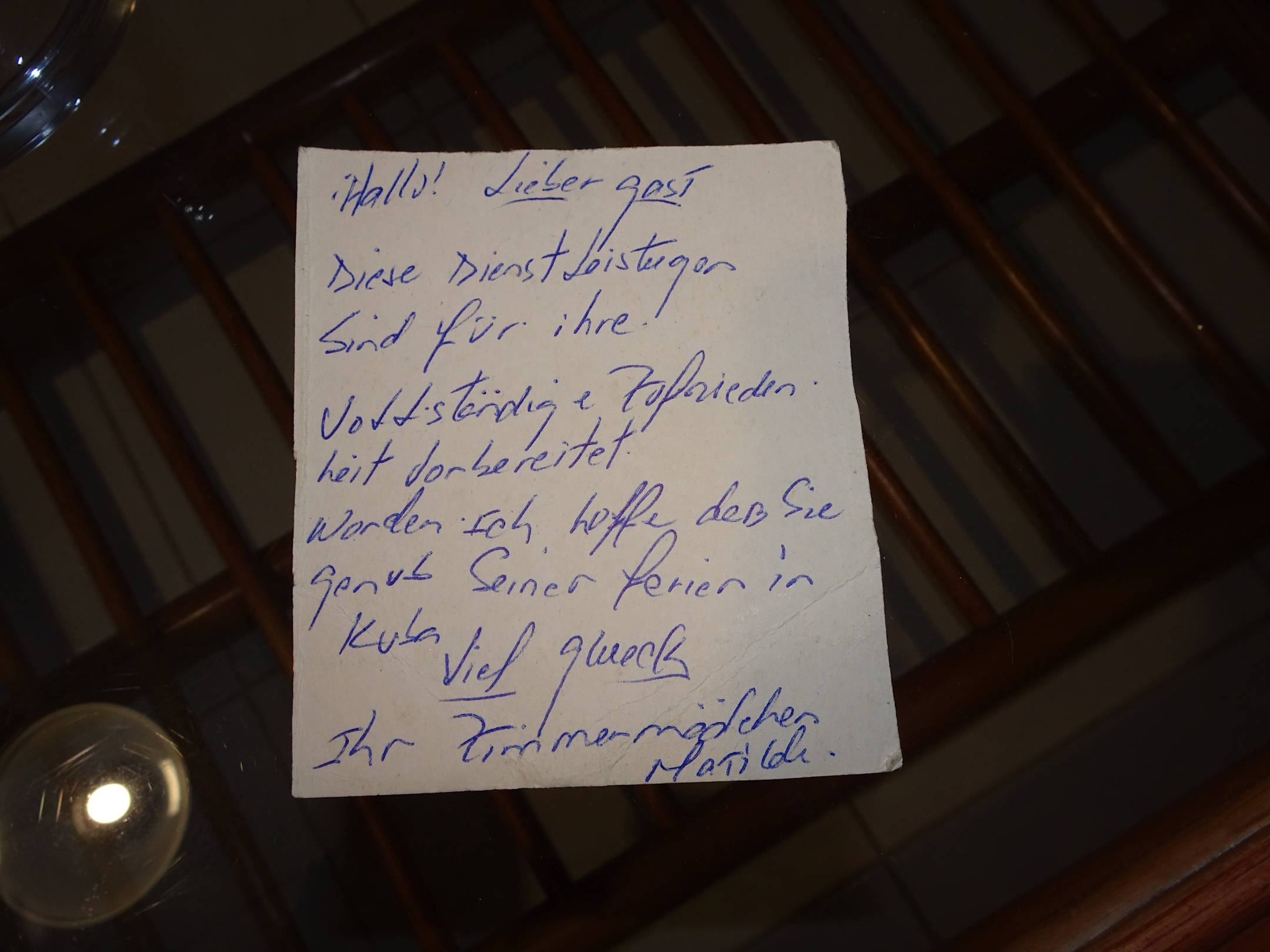 Liebe Grüße von den Zimmermädchen auf deutsch