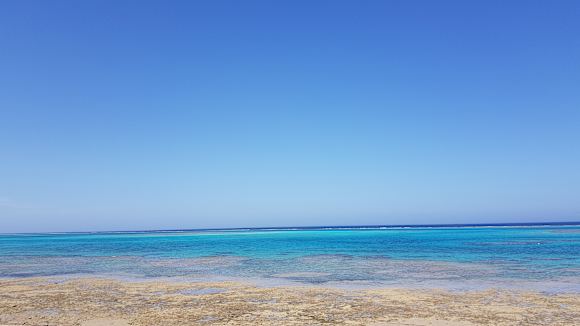 Glasklares Wasser am Strand mit schönen Riff zum Schnorcheln. Wie in der Karibik