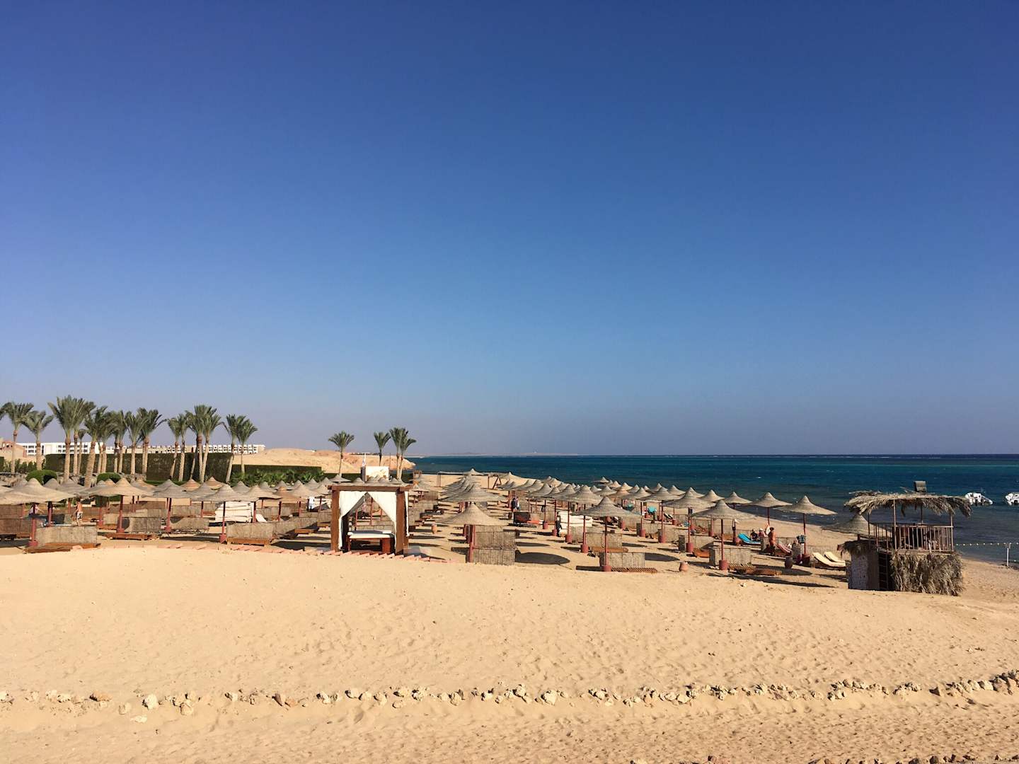 Blick vom Ruhebereich auf den Strand